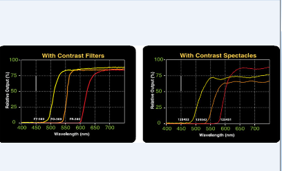 光譜圖(下圖分別為加上對比濾色板及戴上熒光增強(qiáng)眼鏡后的光譜圖)