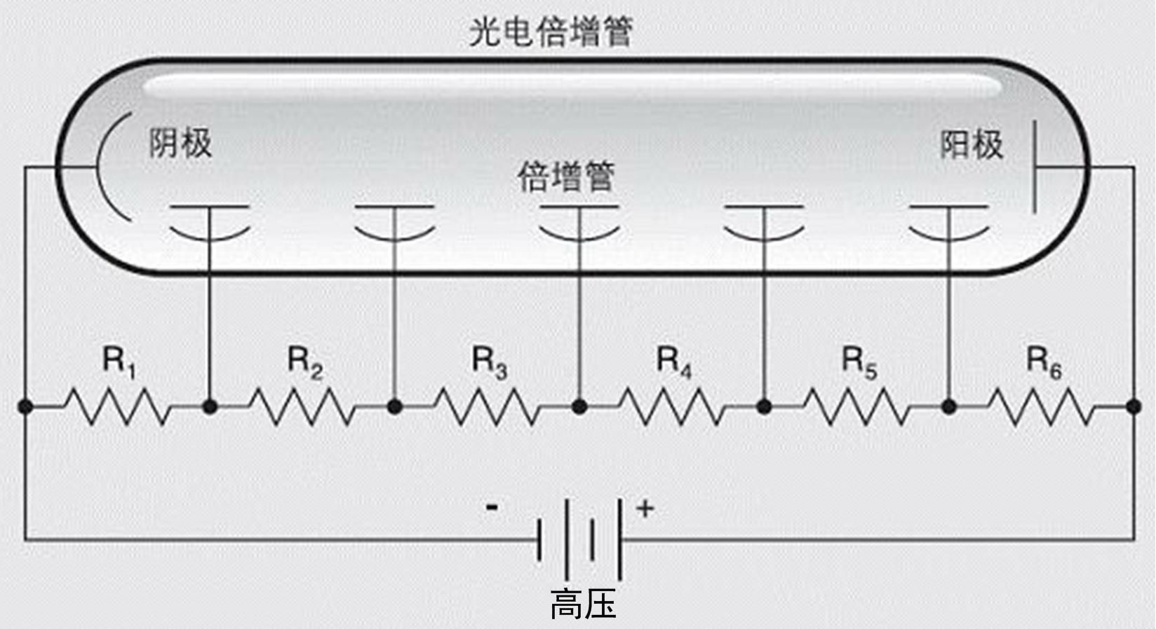 光電倍增管(Photomultiplier Tube,簡稱PMT)將光信號轉(zhuǎn)化為電信號,后續(xù)需要配合相應(yīng)附件及電路,如管座、分壓器、高壓電源等,才能使電信號正常輸出并處理。