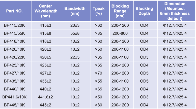 4、庫存:上萬種標準及非標準帶通濾光片產(chǎn)品現(xiàn)貨供應(yīng)