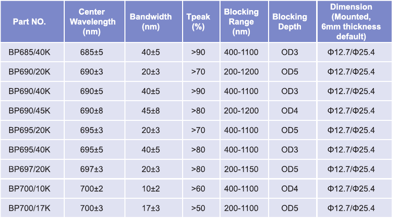 帶通濾光片波長(zhǎng)范圍:665nm-675nm