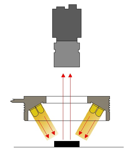 環(huán)形光源由高亮LED陣列特殊設(shè)計而成,光源角度以中心垂直線為基準,提供多種不同照射角度選擇,適應(yīng)于檢測物體的邊緣清晰特征,突出感興趣的被測物體信息,解決對角照射陰影問題。