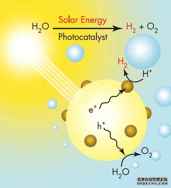 半導(dǎo)體TiO2及過渡金屬氧化物、層狀金屬化合物,如K4Nb6O17、K2La2TiO10、Sr2Ta2O7等,以及能利用可見光的催化材料,如CdS、Cu-ZnS等,都能在一定的光照條件下,催化分解水,從而產(chǎn)生氫氣。然而到目前為止,利用催化劑光解水的效率還很低,只有1% ~2%。已經(jīng)研究過的用于光解水的氧化還原催化體系主要有半導(dǎo)體體系和金屬配合物體系兩種,其中以半導(dǎo)體體系的研究為深入。 半導(dǎo)體光催化在原理上類似于光電化學(xué)池,細(xì)小的光半導(dǎo)體顆?梢员豢醋魇且粋個微電懸浮在水中,他們像光陽一樣在起作用,所不同的是它們之間沒有像光電化學(xué)池那樣被隔開,甚至陰也被設(shè)想是在同一粒子上,水分解成氫氣和氧氣的反應(yīng)同時發(fā)生。當(dāng)小于387nm 的紫外光照射到TiO2時,價帶上電子吸收能量后發(fā)生躍遷到導(dǎo)帶,在價帶和導(dǎo)帶分別產(chǎn)生了空穴與電子,吸附在TiO2的水分子被氧化性很強(qiáng)的空穴氧化成為氧氣,同時產(chǎn)生的氫離子在電解液中遷移后被電子還原成為氫氣。和光電化學(xué)池比較,半導(dǎo)體光催化分解水放氫的反應(yīng)大大簡化,但通過光激發(fā)在同一個半導(dǎo)體微粒上產(chǎn)生的電子空穴對易復(fù)合。因此為了抑制氫和氧的逆反應(yīng)及光激發(fā)半導(dǎo)體產(chǎn)生的電子和空穴的再結(jié)合,可加入電子給體作為空穴清除劑,以提高放氫效率。廢水中許多有機(jī)物是良好的電子給體,如果把廢水處理與光催化制氫結(jié)合起來,可同時實現(xiàn)太陽能制氫和太陽能去污 。